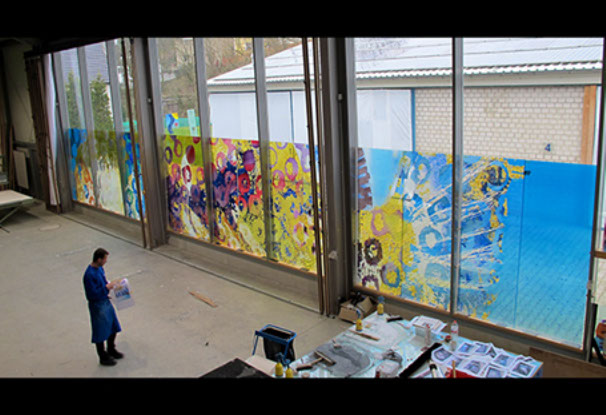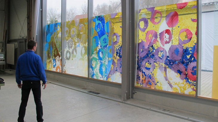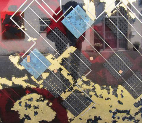 Medium: Enamel fused glass, gold leaf, photovoltaic solar cells and stainless steel