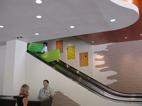 Paintings inset in architectural niches. 60 pieces of various sizes throughout the hotel.