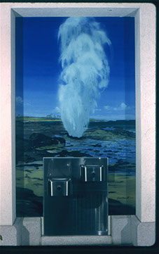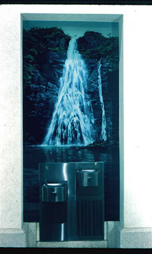 Description: One of three drinking fountain murals (Drink, Rise and Fall) at the Honolulu Convention Center that play with their drinking fountain context.